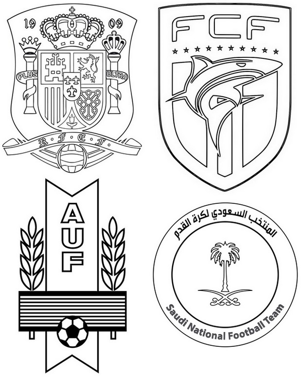 Get acquainted with the symbols of Group H in the upcoming World Cup with this series of ready-to-color images. This document features the emblems of the four nations that will compete on the international stage. You'll find the logo of Spain, representing La Roja with its vibrant colors and champion heritage. The crest of Uruguay, two-time winners of the competition, symbolizes the pride of Les Celestes. The coat of arms of Saudi Arabia incorporates strong cultural motifs, paying homage to the nation's history. Finally, the logo of Cape Verde adds an island and modern touch to this selection for Les Tubarões Azuis. Each image is presented with simple, thick outlines, ensuring easy coloring for all ages. This activity is a great way to celebrate the diversity of sport and discover new football teams. Print these drawings for free to liven up a soccer party or keep children entertained for hours. Bring the flags and graphic elements of each crest to life with your creativity. It's a fun and educational way to prepare for the World Tournament. Get your best colored pencils ready for this journey into the heart of Group H!