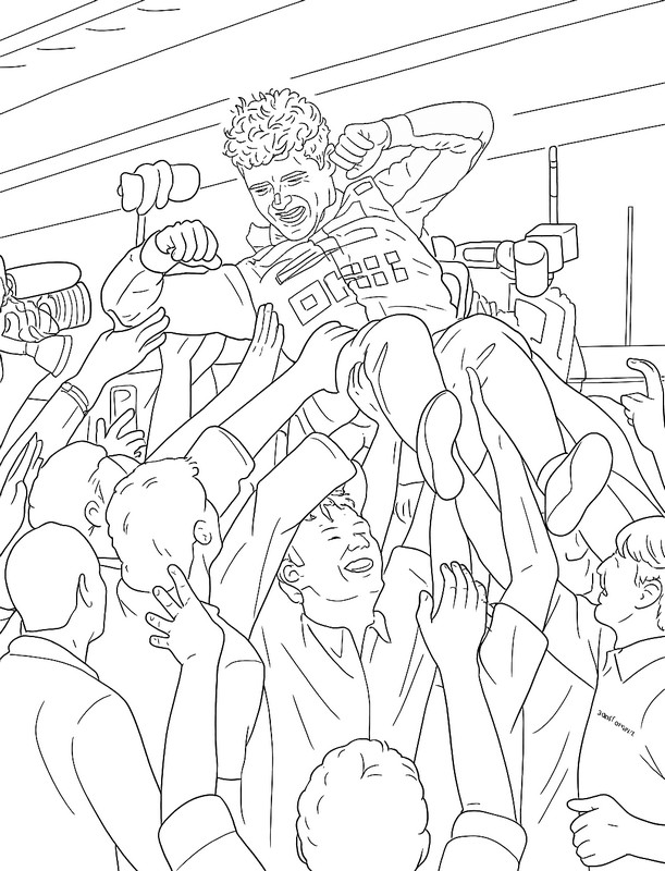 Esta página para colorear muestra a Lando Norris celebrando tras una carrera de Fórmula 1. El piloto es llevado en hombros por sus compañeros de equipo en un ambiente de alegría y triunfo. El dibujo refleja rostros sonrientes, brazos en alto y la emoción de un momento histórico. Los detalles permiten reconocer fácilmente el mono de carreras, los logotipos y los gestos de victoria. Esta página es ideal para los fans de Lando Norris y McLaren, así como para niños que adoran los coches de carreras y los héroes de la F1. Sus líneas definidas facilitan el coloreado con rotuladores o ceras. El fondo sencillo deja espacio para la creatividad y la imaginación. Este dibujo se puede colorear en naranja, negro y blanco, los colores de McLaren. Ilustra la pasión y el trabajo en equipo del automovilismo. Esta página para colorear imprimible gratuita es perfecta para aprender sobre el mundo de las carreras mientras te diviertes. Descarga esta página para colorear de Lando Norris y revive un gran momento de la Fórmula 1.