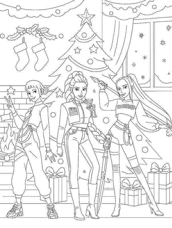 Questa pagina da colorare raffigura i Cacciatori di Demoni K-pop in una scena festosa e magica. Le tre eroine sono in piedi davanti a un grande albero di Natale decorato con ghirlande e stelle. Sono circondate da pacchetti regalo colorati, che evocano la gioia del Natale. Un camino scoppiettante riempie lo sfondo, proiettando una luce soffusa sulla stanza. Questo disegno invita i bambini a colorare in un'atmosfera calda e invernale. Offre molti dettagli da riempire con colori vivaci. Gli appassionati di K-pop e del mondo fantasy apprezzeranno questa scena unica. Le linee pulite rendono la colorazione facile, anche per i più piccoli. Questa pagina da colorare gratuita è perfetta per sviluppare la creatività divertendosi. Può essere stampata per un'attività artigianale durante le vacanze di Natale. Il tema del disegno combina moda, musica e festa. Questa pagina da colorare natalizia dei Cacciatori di Demoni K-pop porta un tocco moderno e gioioso al mondo della colorazione invernale.