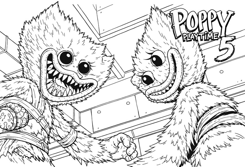 Denne fargeleggingssiden har Huggy Wuggy og Kissy Missy, to ikoniske figurer fra Poppy Playtime 5. Designet viser frem deres uttrykksfulle ansikter og pelskledde silhuetter. De klare omrissene gir mulighet for presis og hyggelig fargelegging. Denne fargeleggingssiden tilbyr mange områder å tilpasse med forskjellige farger. Fans kan gjenskape de originale fargene eller finne opp sin egen versjon. Den industrielle settingen gir illustrasjonen en altoppslukende atmosfære. Denne fargeleggingssiden kan enkelt skrives ut for en kreativ aktivitet hjemme. Den passer for barn, tenåringer og tegneentusiaster. Huggy Wuggy og Kissy Missy er svært gjenkjennelige figurer fra spillets univers. Denne siden bidrar til å stimulere fantasi og kreativitet. Den detaljerte tegningen bidrar til å utvikle konsentrasjon og presisjon. Denne fargeleggingssiden er ideell for alle Poppy Playtime-fans som ønsker å lage sin egen kunstneriske versjon.