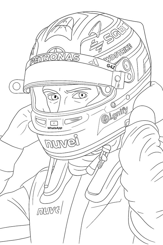 Diese Ausmalseite zeigt George Russell, Formel-1-Fahrer von Mercedes, wie er vor dem Rennen seinen Helm zurechtrückt. Die Zeichnung hebt seinen konzentrierten Blick und die vielen Details seiner Ausrüstung hervor. Auch die bekannten Logos seiner Sponsoren wie Petronas, Nuvei und WhatsApp sind zu sehen. Diese Ausmalseite ist perfekt für Kinder, die Motorsport lieben und Mercedes-Fans sind. Die präzisen Linien sorgen für ein sauberes und angenehmes Ausmalerlebnis. Kleine Motorsportfans können die Farben von George Russells metallisch-blauem Helm originalgetreu wiedergeben. Diese kostenlose Vorlage fördert Kreativität und Präzision. Kinder können so die Welt der Formel 1 auf entspannende Weise entdecken. Jüngere Kinder lernen die Merkmale eines professionellen Rennhelms kennen. Diese realistische Ausmalseite ist ideal, um eine Sammlung über Formel-1-Fahrer zu vervollständigen. Sie vereint Konzentration, Sport und die Freude am Ausmalen. Drucken Sie diese George-Russell-Ausmalseite aus und erwecken Sie eines der vielversprechendsten Talente der Formel 1 zum Leben.